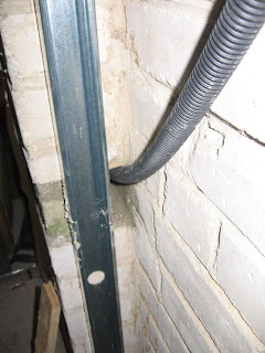 Nous avons du enlever un morceau de bastaing, qui servait de soutien à une ancienne fenêtre et qui était bloqué dans un poteau, pour passer la gaine...
