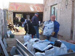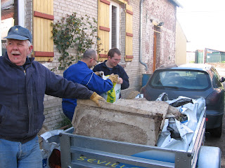 Nous avons commencé l'évacuation des gravats qui s'accumulaient depuis plus d'un an, nous avons profité de la visite de la famille dans la région pour rameuter du monde et faire place propre.