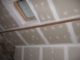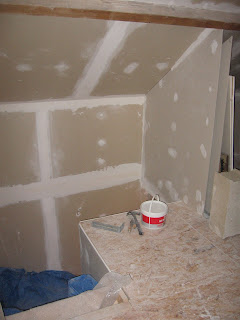 Donc on en voit le bout de ce fichu placo, enfin surtout des bandes à enduire et re-enduire. il ne reste qu'un coup de ponçage à réaliser et nous pourrons passer la sous-couche qui sera donc l'objet d'un nouvel atelier ...